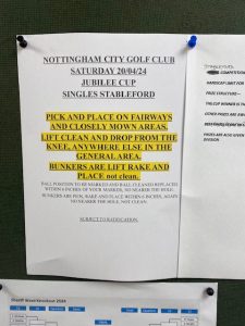 SPECIFIC COMP RULES – The course is playing over 15 holes but given the ambiguity over the 13th hole this hole will NOT count towards BOTH the competition or your handicap. Please can you play this hole to avoid build up of players on the 14th Tee box.